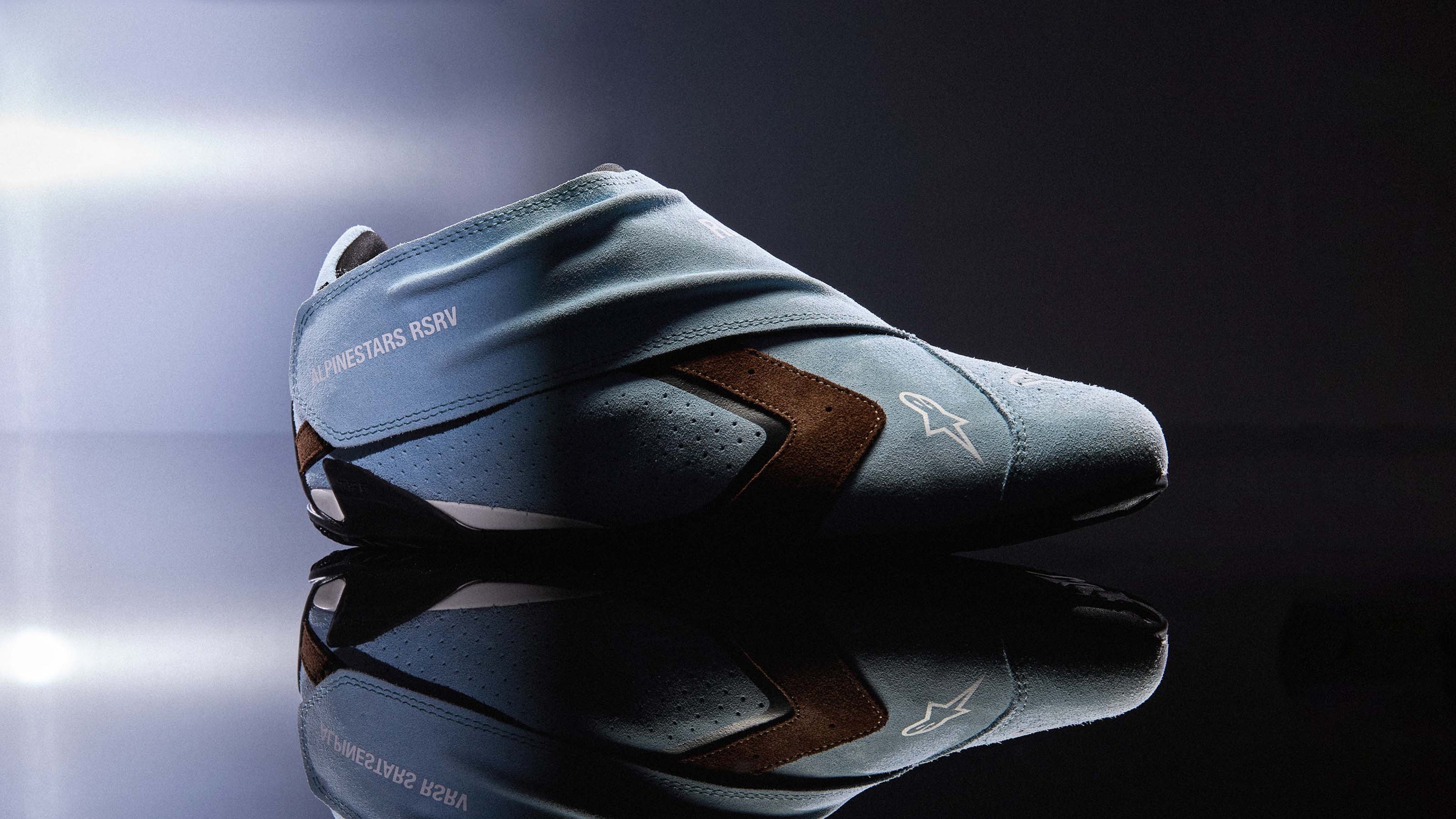 Since 1963, Alpinestars has produced cutting-edge footwear and it was only inevitable that RSRV revisited this celebrated chapter in Alpinestars' history. Part of the RSRV purpose is to inform the future, by reaching deep into the past and the STARLINE SHOE is a sleek, suede, race-inspired manifestation of that purpose.