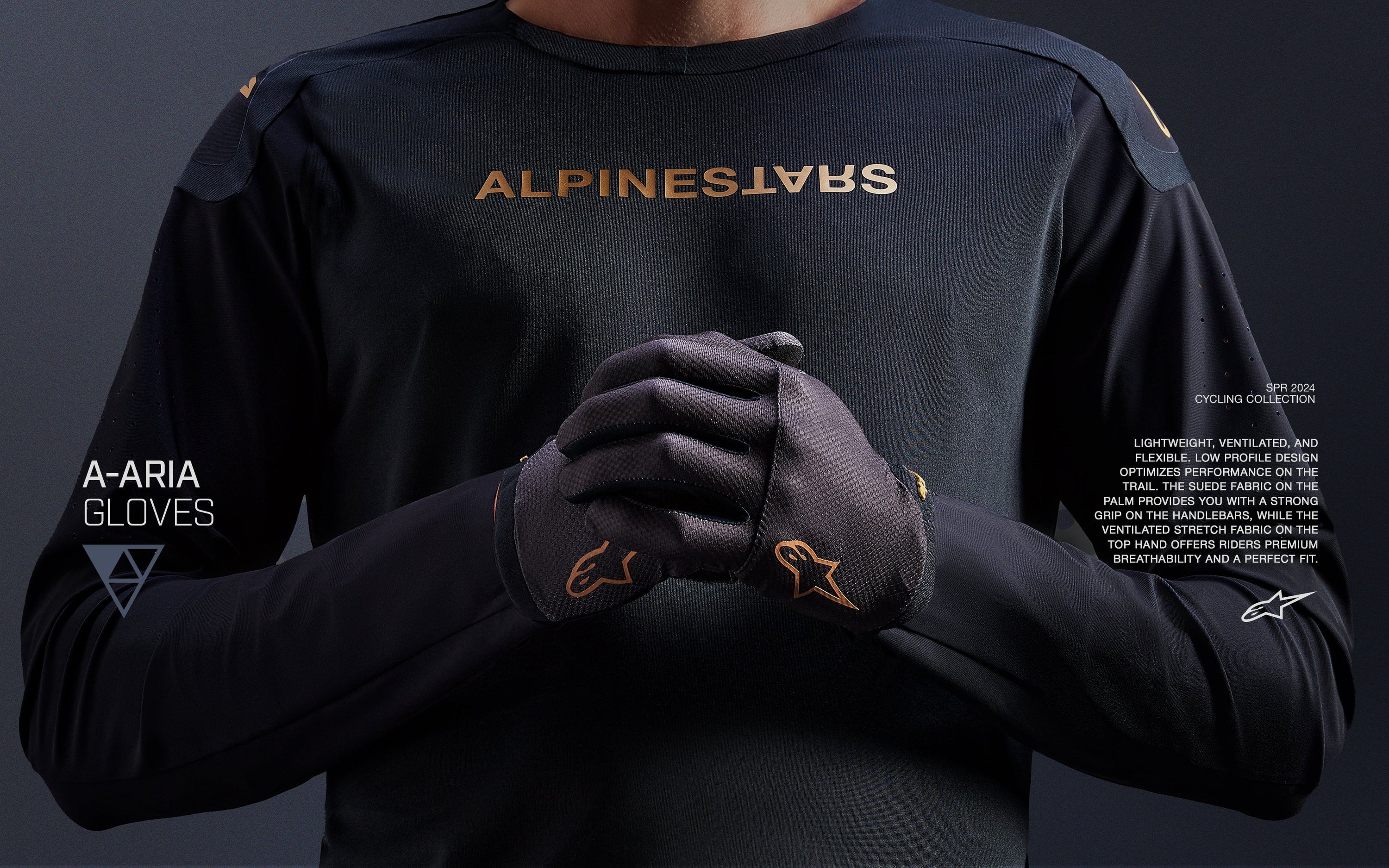 Lightweight, ventilated, and flexible, the A-Aria Gloves are designed with a low profile to optimize your performance on the trail. The suede fabric on the palm provides you with a strong grip on the handlebars, while the ventilated stretch fabric on the top hand offers riders premium breathability and a perfect fit.