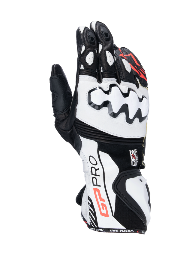 The GP Pro RS4 Gloves are a pure racing sport performance gauntlet glove with optimized material mapping to guarantee excellent fit and comfort, as well as the highest levels of protection. Constructed with premium materials, the gloves are equipped with Alpinestars Dynamic Friction Shield (DFS) knuckle and cuff protectors with advanced airflow ventilation and aramidic reinforcement to ensure the gloves are primed for superior trackday performance.