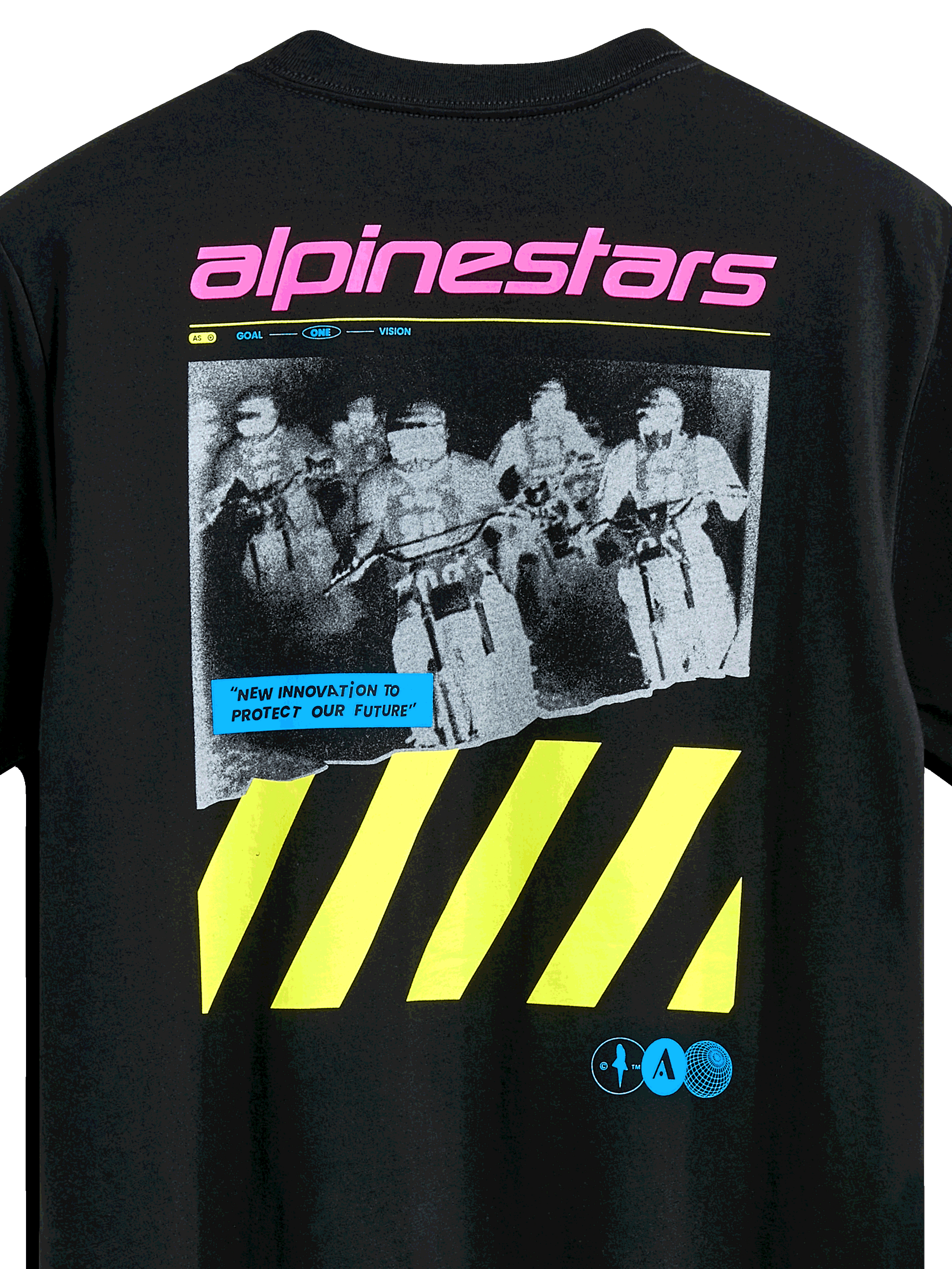 • Alpinestars large graphic with distressed photo and front chest logo art.