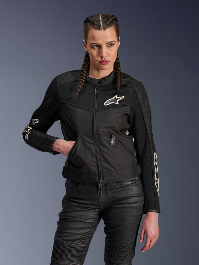 Introducing the Stella T-DYNO Air Jacket, a tailored and breathable alternative designed specifically for female riders. Inspired by Alpinestars' esteemed heritage in crafting motorcycle riding gear, this jacket seamlessly merges vintage design influences with contemporary innovation, offering a unique blend of tradition and modernity. Crafted with the female form in mind, the Stella T-DYNO Air Jacket stands out with its meticulously tailored fit and attention to detail. Building upon the timeless appeal of vintage motorcycle apparel, this jacket introduces innovative materials and design elements. Featuring extended 3D mesh on the yoke and sleeves, the Stella T-DYNO Air Jacket prioritizes breathability and airflow for maximum comfort during warm weather rides.