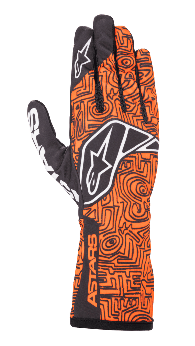 This lightweight sports glove model features a new construction of polyester bonded with polymesh to offer superb levels of durability, comfort, fit and feel, and has internal seams and synthetic suede leather on the palm to allow for excellent levels of comfort, feel and grip. There are also mesh fourchettes on one half of the fingers and lycra on the other half for the perfect blend of ventilation, flexibility and comfort, with a silicon surface treatment on the palm and fingers for improved flexibility and control. It is also equipped Alpinestars open cuff design with a 180° elasticated wrist for easy entry and a secure fit, and a touch compatible print on thumb and index fingers for using mobile devices while at the track.
