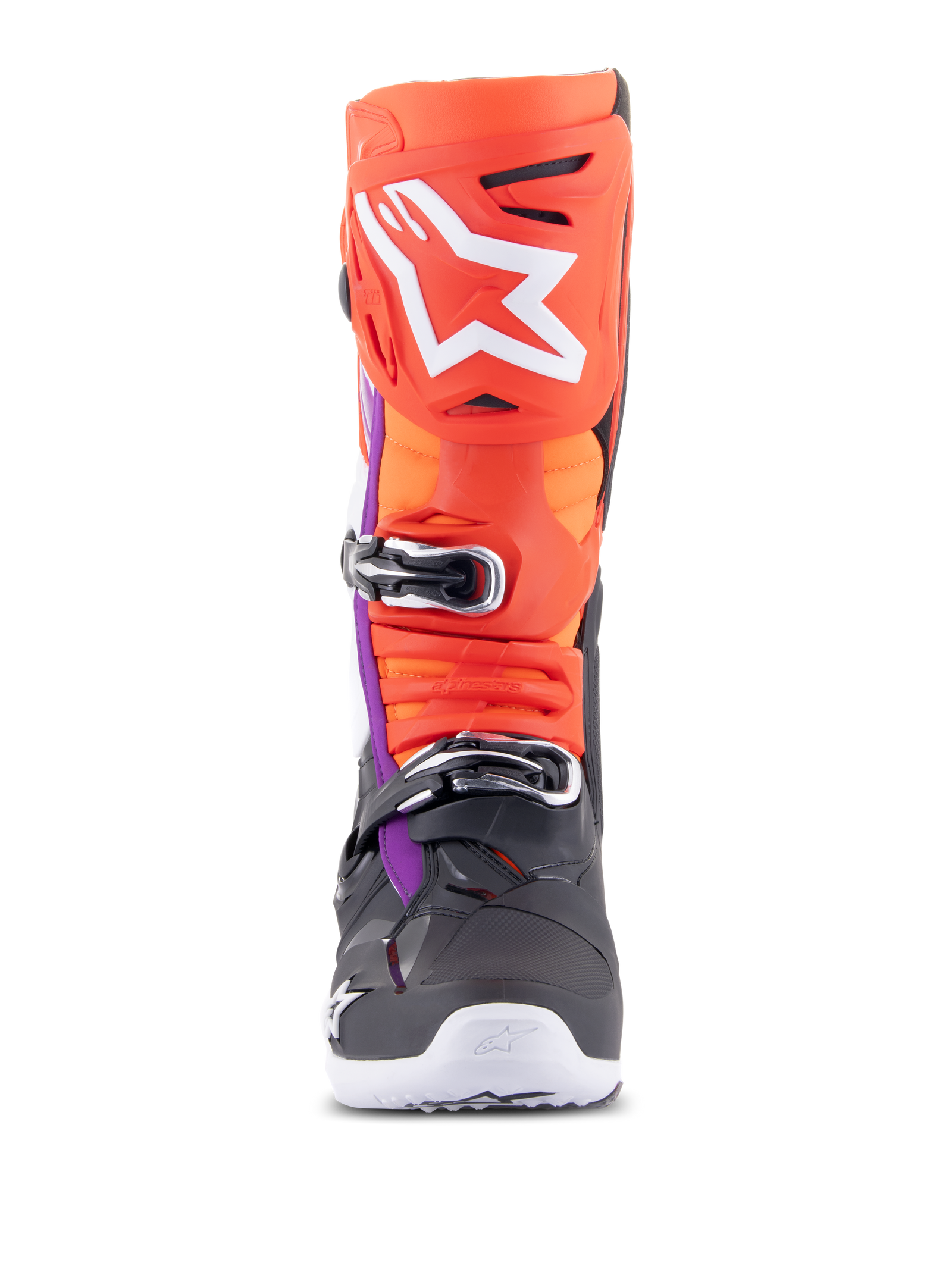The Tech 10 has set the standard for Motocross boot performance and protection for well over a decade now, with an ongoing focus on product development and innovation that continues to raise the performance envelope higher and higher. Here at Alpinestars, we believe in perfection through innovation; while maintaining the iconic Tech 10 look, the latest iteration of the boot works tirelessly to offer a rider the ultimate in feel, comfort, and overall safety, lifting the ceiling of what a premium motocross boot should be higher than ever before.
