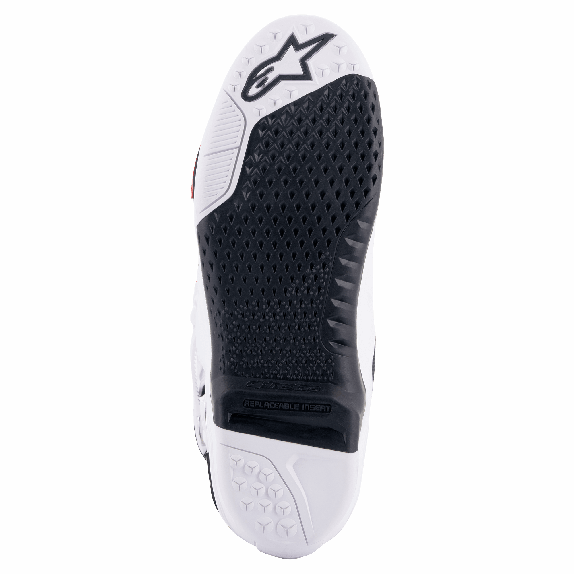 • The central sole insert features micro grip and side hooking grip design. It is easily replaceable and Alpinestars offers a full sole replacement and boot repair service.