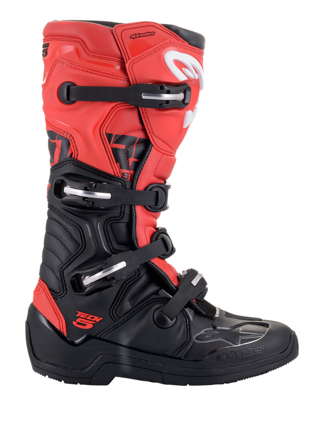 Coming in the wake of the hugely successful and iconic Tech 10 and Tech 7 the new Tech 5 is an advanced multi-material, multi-panel construction boot that further strengthens Alpinestars line-up of class-leading motocross and off-road boots. Incorporating an innovative microfiber chassis, which is extremely durable and lightweight, a medial biomechanical pivot system for excellent levels of support and stability and extended accordion flex zones, the Tech 5 affords performance fit and high levels of comfort and durability.